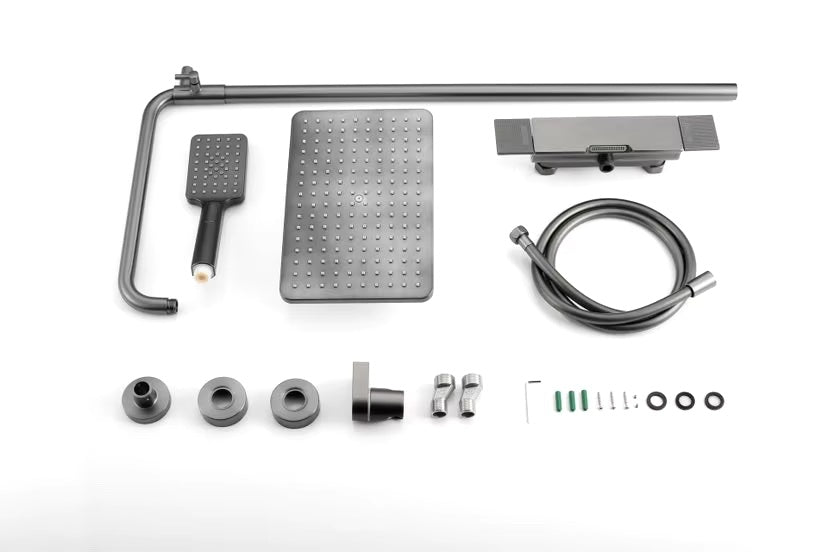 Harmonisez votre pièce d'eau en complétant cette colonne de douche d'un robinet de salle de bains, d'une bonde de vidange, d'un siphon d'évacuation ou encore de portes serviettes en finition gris brossé.