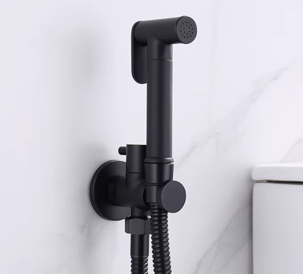 Harmonisez votre pièce d'eau en complétant cette douchette hygienique d'un robinet de lavabo, d'une bonde de vidange et d'un siphon d'évacuation finition noir mate.