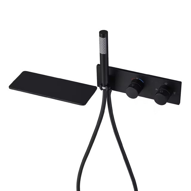 Mitigeur de Baignoire Thermostatique Encastré Noir Mate avec Bec Tablette – Design Minimaliste