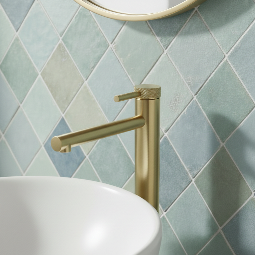 Sublimez votre salle de bain avec ce mitigeur de vasque haut XL en finition or brossé, alliance parfaite entre élégance et fonctionnalité.