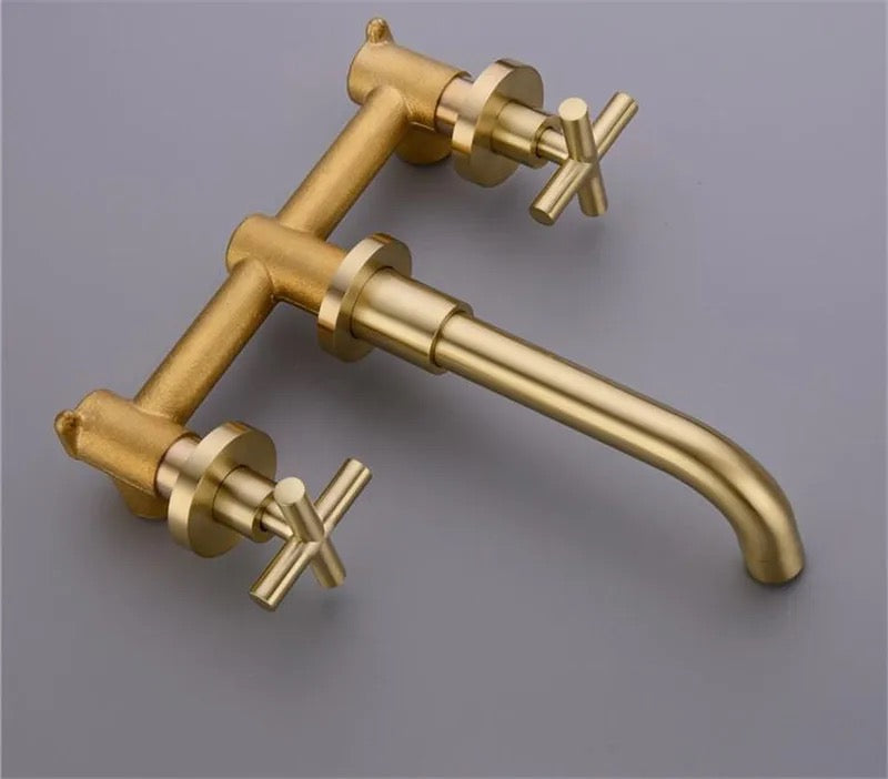 Robinet mural encastré or brossé – Design moderne et minimaliste pour salle de bain