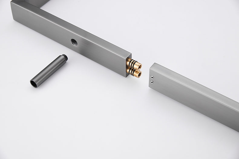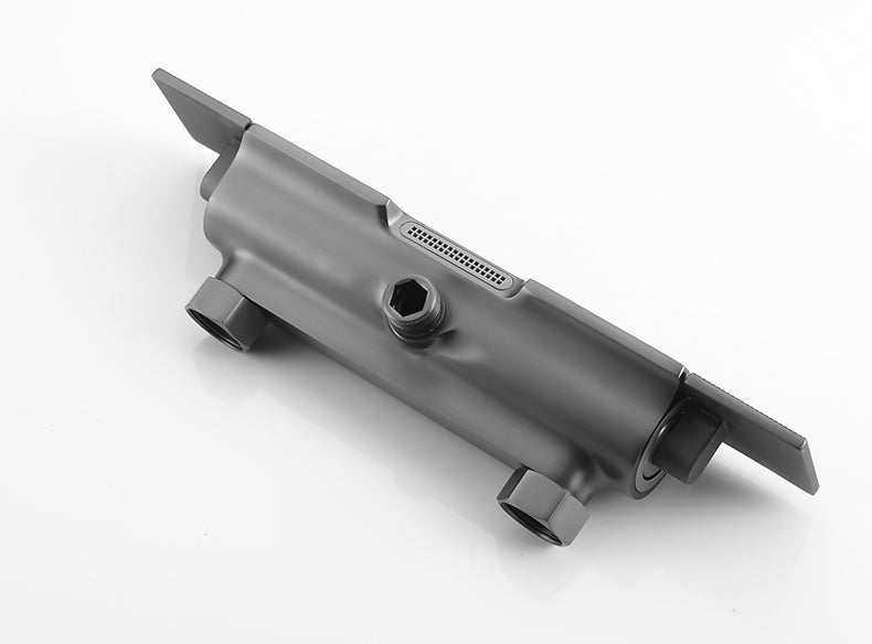 Colonne de douche thermostatique en finition gris brossé, équipée d'une douchette à main multi-jets et d'un ciel de douche rectangulaire. Également pourvue d’un bec verseur, elle sera idéale au dessus de votre baignoire. Il est conseillé de positionner son mitigeur à une hauteur standard de douche de 110 cm par rapport au sol. Elle est constituée de laiton et d'alliage d'acier inoxydable pour une durabilité exemplaire.