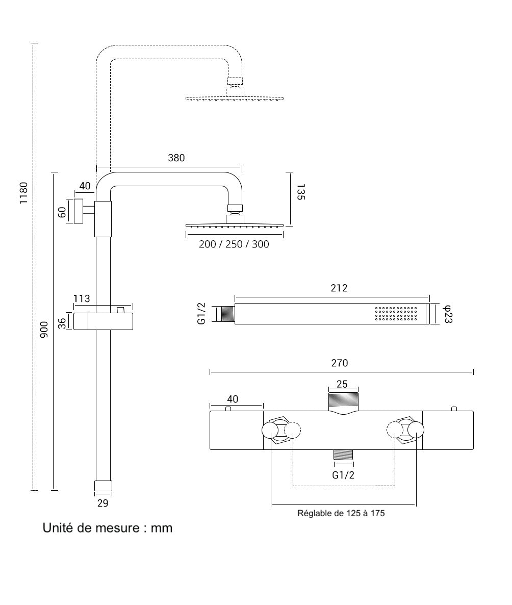 Dotée d’un mitigeur thermostatique de précision, cette colonne assure une température constante et sécurisée, évitant tout risque de brûlure. Son pommeau de douche effet pluie extra-fin et sa douchette à main épurée offrent une expérience de douche personnalisée, entre relaxation et efficacité.