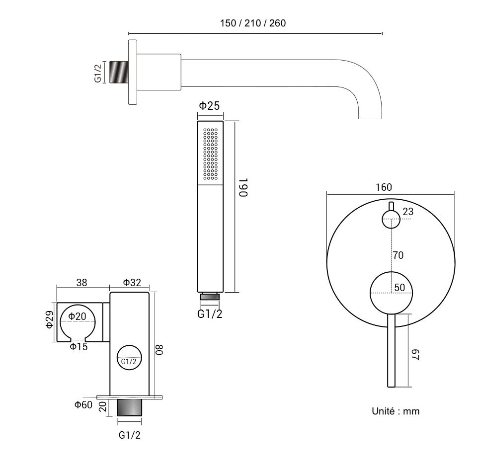 Harmonisez votre pièce d'eau en complétant cet ensemble de douche thermostatique d'un robinet de lavabo, d'une bonde d'évacuation et d'un siphon finition gris brossé.