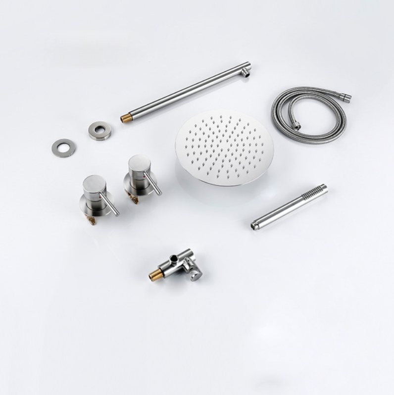 Ensemble de douche mécanique (Peut être raccordé en thermostatique) en finition chrome, équipé d'une douchette à main au design épuré et d'un ciel de douche déclinable en plusieurs diamètre suivant vos besoins.