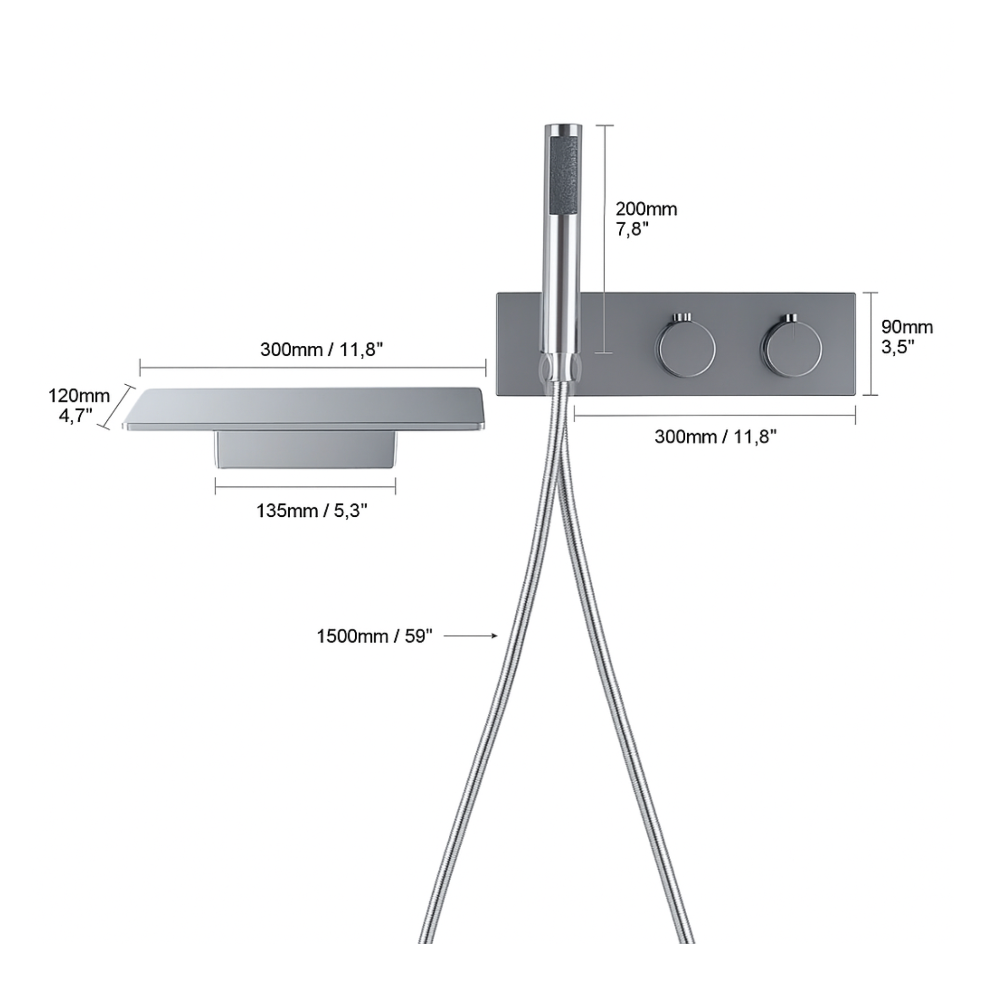 Colonne de bain et de douche thermostatique en finition chrome, équipée d'une douchette à main au design épuré et d'un bec verseur pour baignoire extra plat. Ce bec verseur est indépendant du reste des poignées de commande, ce qui vous laissera libre choix de la positionner à l'endroit idéal pour votre installation. Il sert également de tablette pour votre savon.