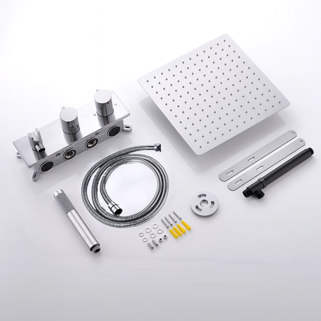 Le ciel de pluie carré, type plafonnier ou mural, est inclinable à 360° et disponible dans plusieurs dimensions, afin de s'ajuster à la perfection à votre installation.