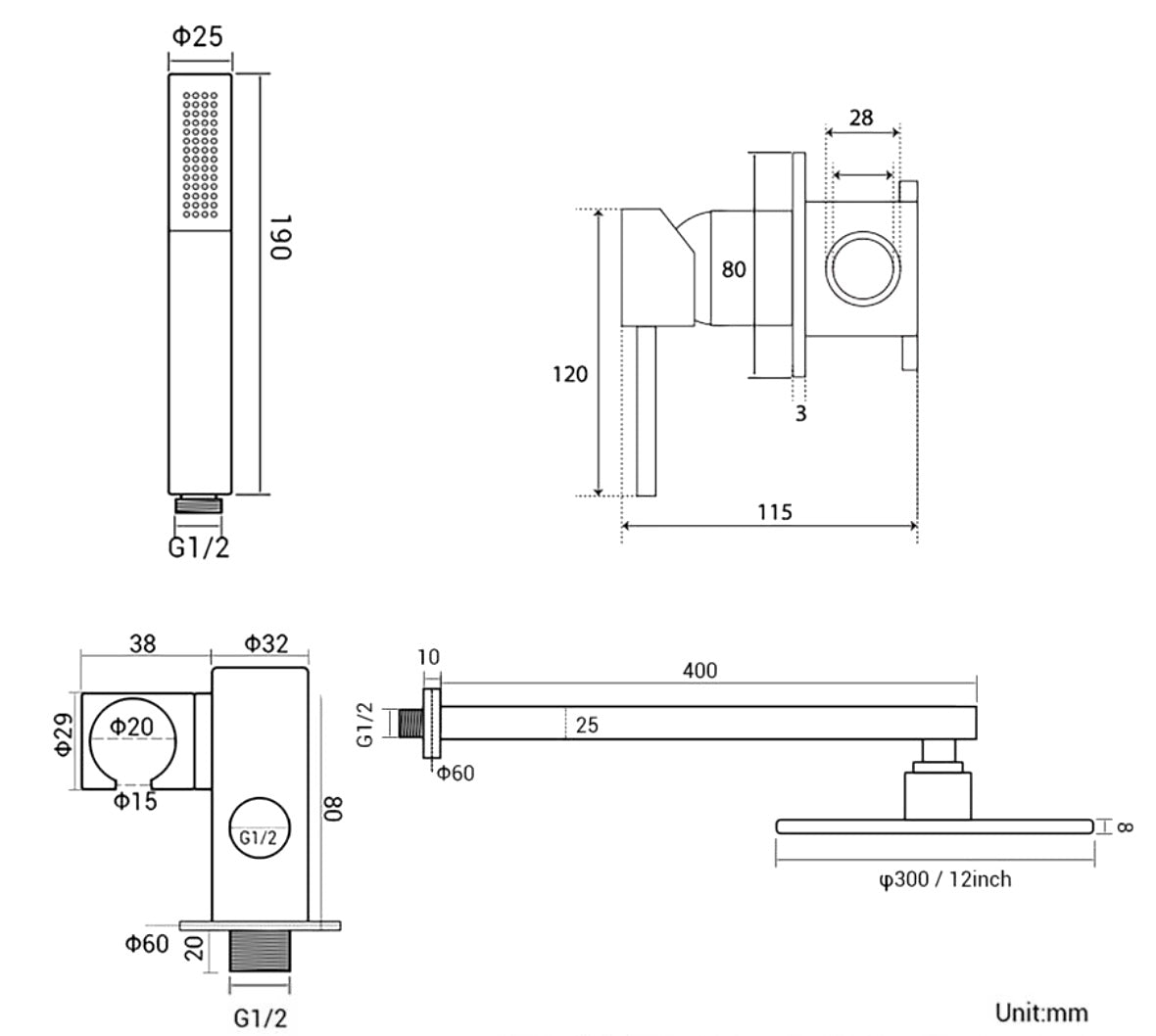 Permutez de la douchette au ciel de douche à l'aide des différentes poignées. Le ciel de douche et la douchette à main pourront être utilisés simultanément grâce au raccordement individuel.