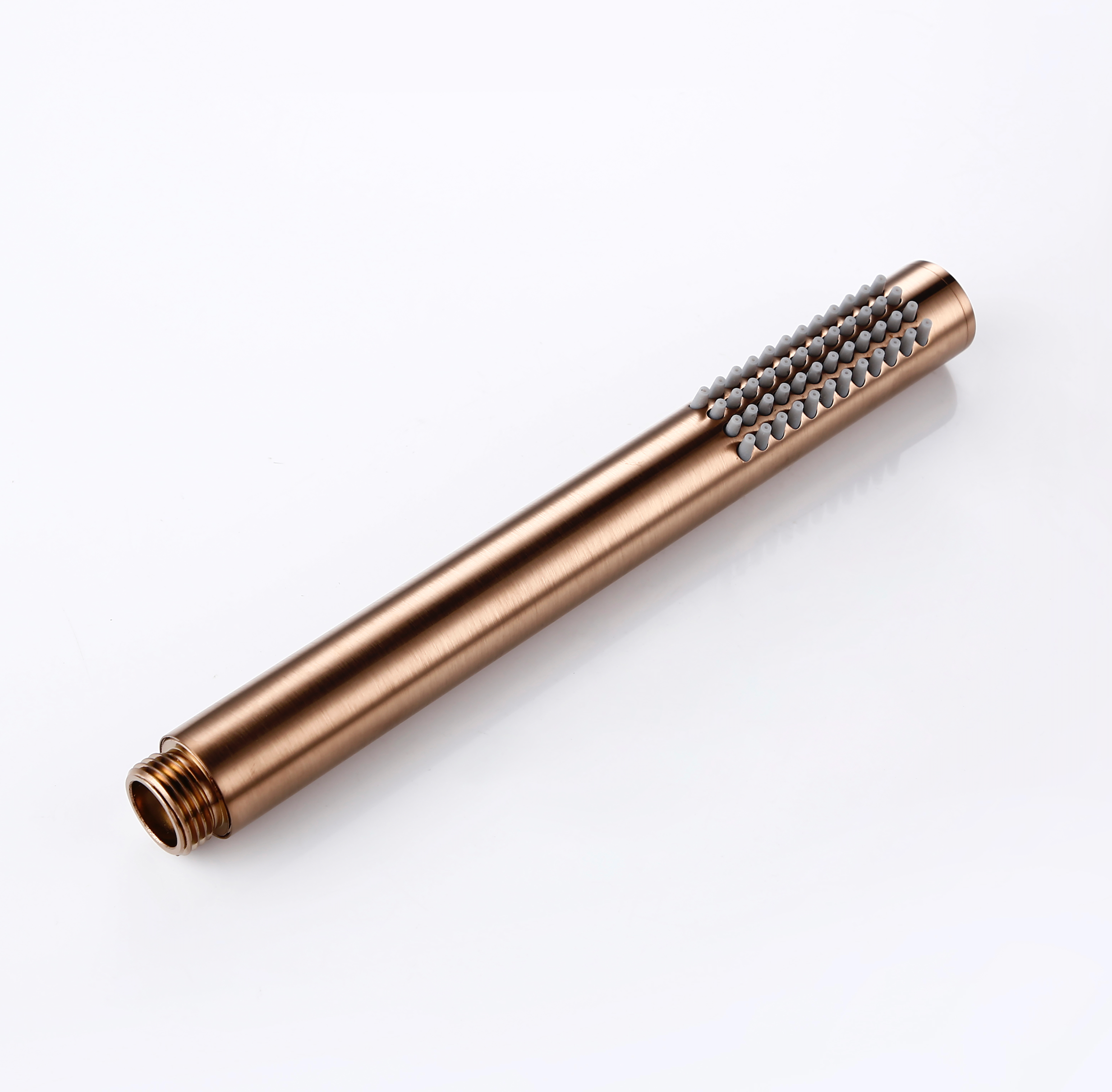 Ensemble de douche mécanique en finition or rose brossé, équipé d'une douchette à main au design épuré et d'un ciel de douche déclinable à 360° en plusieurs diamètres suivant vos besoins.