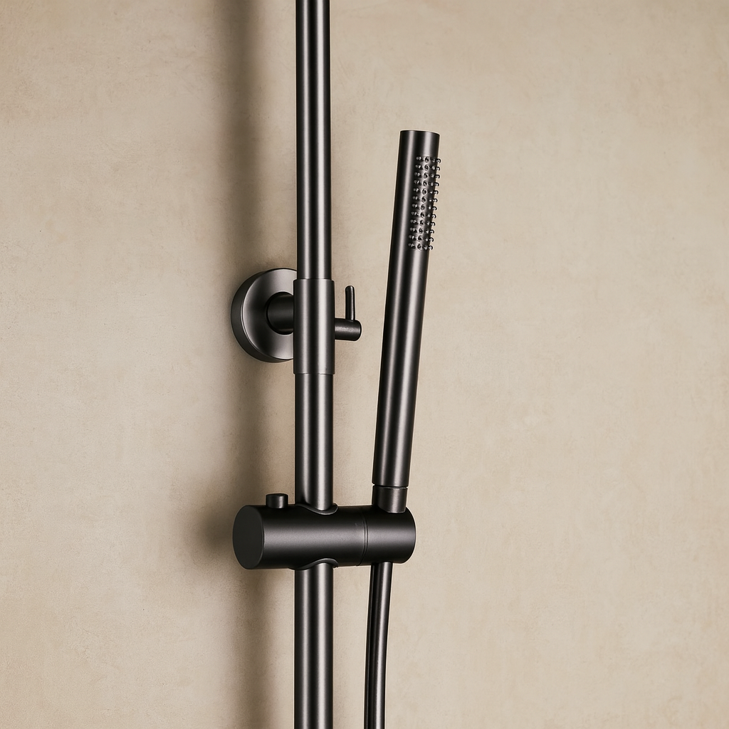 La douche de tête extra-plate effet pluie vous enveloppe d’un jet généreux et relaxant, tandis que la douchette à main offre praticité et précision pour une utilisation quotidienne. Sa finition gris brossé premium résiste aux traces et s’intègre harmonieusement dans les salles de bain contemporaines.