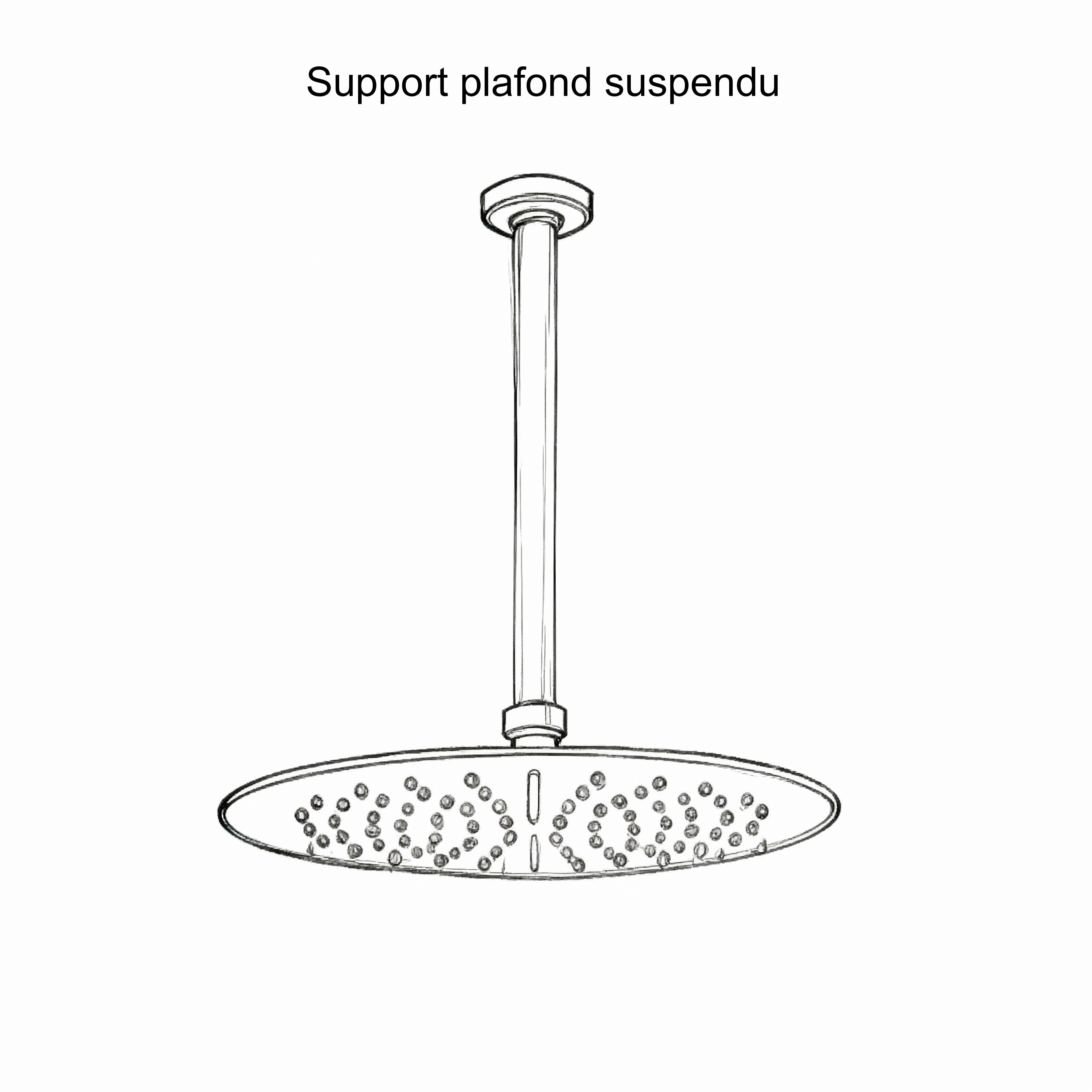 Ciel de pluie réglable à 360° et proposé dans plsuieurs diamètres. Support de douchette inclinable.